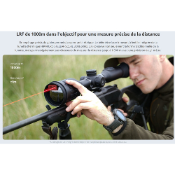 Elle est également équipée d'un télémètre de portée 1000m, permettant une mesure précise des distances tout en proposant le calcul balistique, analyse et compensation de l'angle et de la distance, avec personnalisation du point d'impact et du type de balle pour assurer une précision à toute distance.